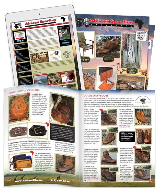African Sporting Creations caters to the global hunting population with safari-inspired clothing, shooting sticks, footwear, hunting gear, jewelry and safety items. Additionally, they are a select U.S. dealer for African made Courteney®Boots.