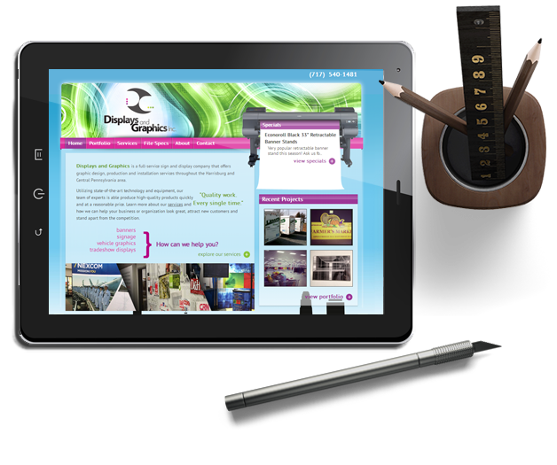 Our goal was to establish a professional online image that would showcase their full range of services and capabilities. MICO created a web site that enables the staff at Displays & Graphics to quickly and easily update their portfolio and specials.